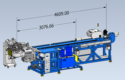 При выборе трубогибочного оборудования ключевым параметром является максимальная длина заготовки, которая ограничена длиной дорна. Для станков серии CNC38–CNC76 это расстояние от центра гибочного ролика до цанговых лепестков каретки в заднем положении составляет около 3000 мм.